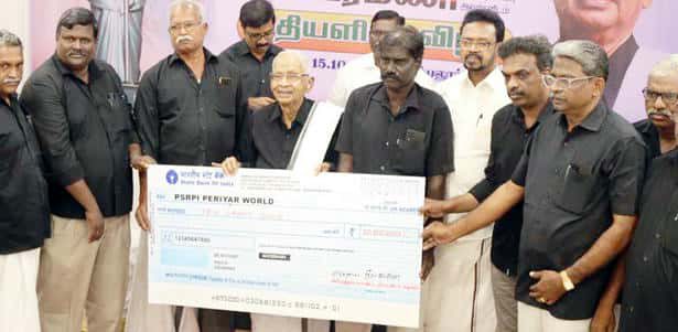 பொதுக்குழு உறுப்பினர் இரத்தின .இராமச்சந்திரன் குடும்பத்தினர் பெரியார் உலகநிதியாக ரூ 1,00,000 வழங்கினர் மாநில ப.க…