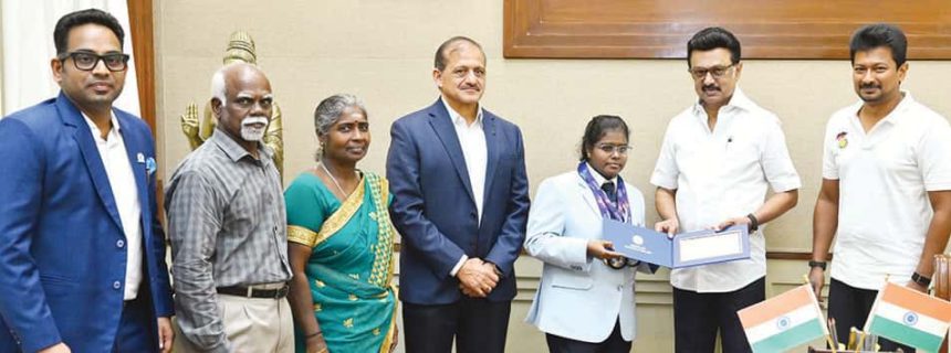 அதைத் தொடர்ந்து, செல்வி கீர்த்தனா மற்றும் செல்வி காசிமா ஆகியோருக்கு உயரிய ஊக்கத் தொகைக்கான காசோலை களை முதலமைச்சர் மு.க.ஸ்டாலின் இன்றைய நாள் வழங்கி, வாழ்த்தி அடுத்தடுத்து வரும் போட்டிகளில் வெற்றி பெற்று, நாட்டிற்கு மென்மேலும் பெருமை சேர்க்க வேண்டும் என்று கேட்டுக் கொண்டார்.
