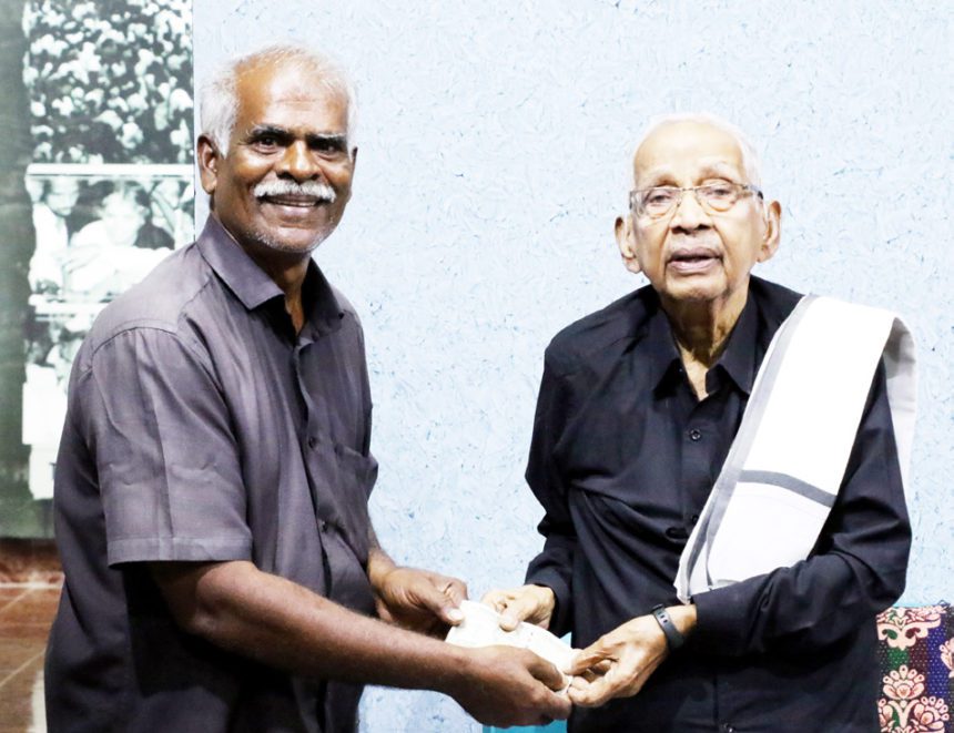 தமிழர் தலைவர் ஆசிரியரிடம் கழக பொதுக்குழு உறுப்பினர் குரும்பூண்டி மூ.சேகரின் தந்தை மா.மூக்கையன் அவர்களின் நினைவு நாளையொட்டி (29.12.1988)) விடுதலை வளர்ச்சி நிதியாக ரூ.500அய் வழங்கினார்.