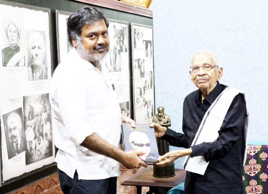 23.12.2025 அன்று சென்னை பெரியார் திடலில் தமிழர் தலைவர் ஆசிரியர் கி.வீரமணி அவர்களை, முனைவர் குமார் ராஜேந்திரன் சந்தித்து, பொன்மனச்செம்மல் எம்.ஜி.ஆர். அவர்களின் நினைவு நாளின் நினைவாக தான் தொகுத்து எழுதியுள்ள கீழ்க்காணும் மூன்று நூல்களை வழங்கினார். எழுத்தாளர் மணா அவர்களும் உடன் இருந்தார்.