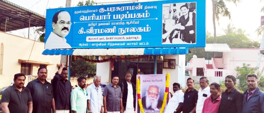 தந்தை பெரியாரின் 52ஆவது நினைவு நாளை முன்னிட்டு படிப்பகப் புரவலர் பொற்கோவன் தந்தை பெரியார் படத்திற்கு மாலை அணிவித்தார்