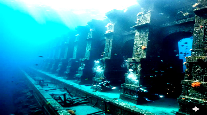 கரையிலிருந்து சுமார் 16 கிலோமீட்டர் தொலைவில், 42 மீட்டர் ஆழத்தில், சூரிய வெளிச்சம் கூட நுழையத் தடுமாறும் அந்த இருள் சூழ்ந்த அமைதியில், ஒரு பிரமாண்ட உருவம் தென்பட்டது. அது ஒரு கற்பனை அல்ல; சுமார் 2.5 கி.மீ நீளமுள்ள ஒரு மாபெரும் மதிற்புரம்.