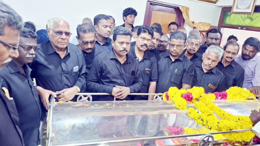 இன்று (4.1.2026) காலை 10.30 மணிக்கு தஞ்சாவூர் பாலாஜி நகர் இல்லத்தில் வைக்கப்பட்டுள்ள மொழிப்போர் தளபதி எல். கணேசன் உடலுக்கு திராவிடர் கழகத்தின் சார்பில் மாவட்டத் தலைவர் வழக்குரைஞர் சி.அமர்சிங், மாநில ஒருங்கிணைப்பாளர் இரா.ஜெயக்குமார் ஆகியோர் தலைமையில் இறுதி மரியாதை செலுத்தப்பட்டது