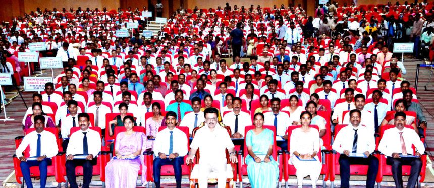 தமிழ்நாடு முதலமைச்சர் மு.க.ஸ்டாலின் நேற்று (3.1.2026) சென்னை கோட்டூர்புரம், அண்ணா நூற்றாண்டு நூலக அரங்கத்தில் காவல்துறை சார்பில் நடைபெற்ற நிகழ்ச்சியில், தமிழ்நாடு சீருடைப் பணியாளர் தேர்வு வாரியம் மூலமாக 621 காவல் உதவி ஆய்வாளர்கள் மற்றும் 129 தீயணைப்புத்துறை நிலைய அலுவலர்கள். என மொத்தம் 750 பணியிடங்களுக்கு தேர்வு செய்யப்பட்டவர்களுக்கு பணி நியமன ஆணைகளை வழங்கி அவர்களுடன் குழு ஒளிப்படம் எடுத்துக் கொண்டார். இந்நிகழ்ச்சியில், மருத்துவம் மற்றும் மக்கள் நல்வாழ்வுத் துறை அமைச்சர் மா.சுப்பிரமணியன், இந்து சமயம் மற்றும் அறநிலையத் துறை அமைச்சர் பி.கே.சேகர்பாபு. தலைமைச் செயலாளர் நா.முருகானந்தம், உள்துறை கூடுதல் தலைமைச் செயலாளர் தீரஜ் குமார், காவல்துறை தலைமை இயக்குநர் (பொறுப்பு) க.வெங்கடராமன், தீயணைப்பு மற்றும் மீட்புப் பணிகள் துறை இயக்குநர் சீமா அகர்வால், காவல்துறை மற்றும் அரசு உயர் அலுவலர்கள் கலந்து கொண்டனர்.
