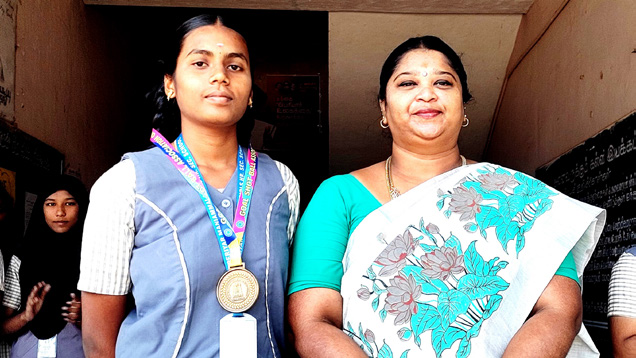 இம்மாணவிக்கு பள்ளித் தலைமையாசிரியை மற்றும் ஆசிரியர்கள் வாழ்த்துகளையும், பாராட்டுதல்களையும் தெரிவித்தனர்.