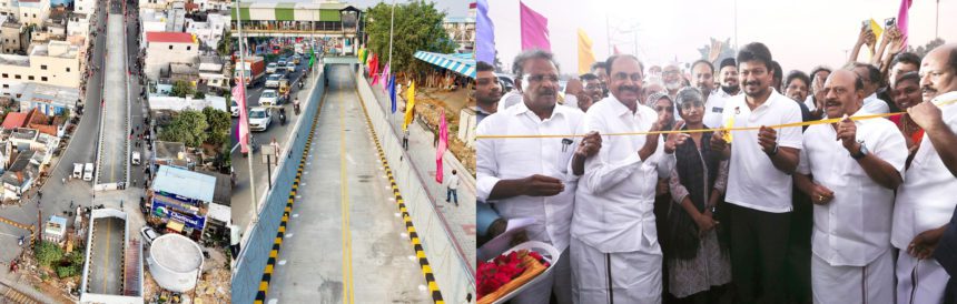 தமிழ்நாடு துணை முதலமைச்சர் உதயநிதி ஸ்டாலின் நேற்று (7.1.2026) செங்கல்பட்டு மாவட்டம் குரோம்பேட்டையில் இராதாநகர். ஜமீன் பல்லாவரம். போஸ்டல் நகர், நெமிலிச்சேரி, நன்மங்கலம் மற்றும் மேடவாக்கம் பகுதி பொதுமக்கள் பயன்பெறும் வகையில் நெடுஞ்சாலைத் துறையின் சார்பில் சென்னை குரோம்பேட்டை ஜிஎஸ்டி சாலை இராதா நகர் இடையில் 31.62 கோடி ரூபாய் மதிப்பீட்டில் கட்டப்பட்ட கடவு எண் 27 வரையறுக்கப்பட்ட ரயில்வே இருவழி சுரங்கப்பாதையை திறந்து வைத்தார். இந்நிகழ்வில் குறு, சிறு மற்றும் நடுத்தர தொழில் நிறுவனங்கள் துறை அமைச்சர் தா.மோ.அன்பரசன், சட்டமன்ற உறுப்பினர்கள் எஸ்.ஆர்.ராஜா, இ.கருணாநிதி, அரசு அலுவலர்கள் மற்றும் பொதுமக்கள் உடனிருந்தனர்.