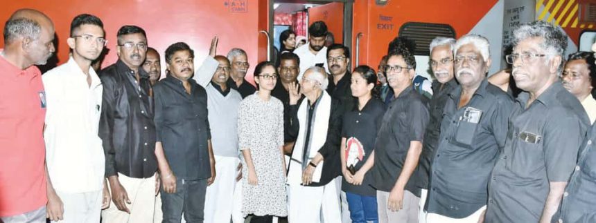 மதுரை ரயில் நிலையத்திற்கு வருகை தந்த தமிழர் தலைவருக்கு கழகப் பொறுப்பாளர்கள் உற்சாக வரவேற்பு அளித்தனர் (10.1.2026)