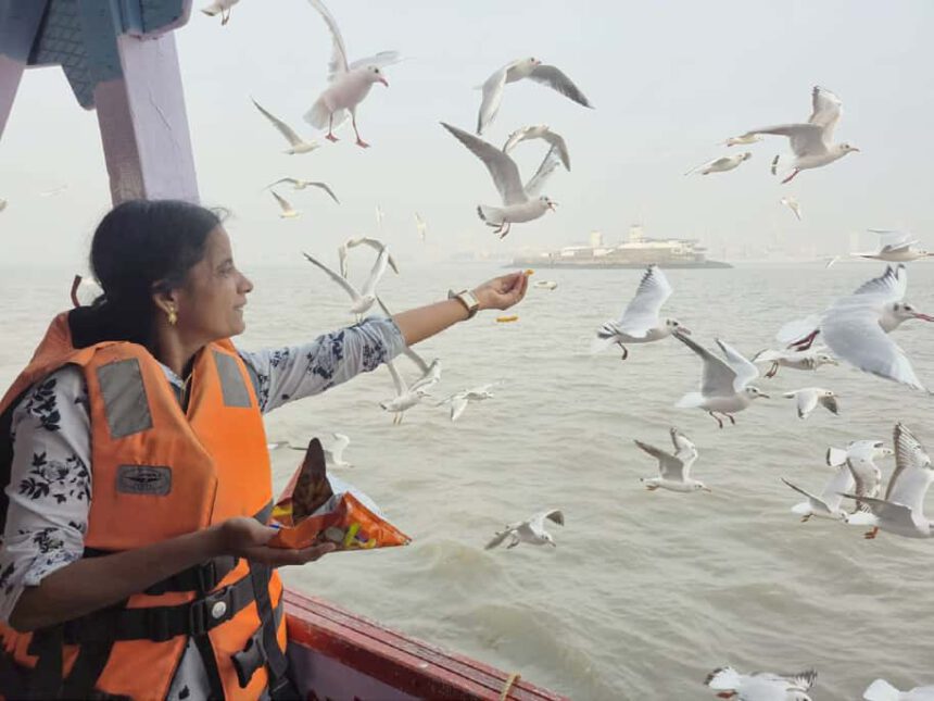 சிறிது தூரம் கூட சென்றிருக்க மாட்டோம். நூற்றுக்கணக்கான புறாக்கள் எங்கள் படகை சுற்றி வளைத்தன. திடீரென்று பார்த்த போது அச்சமாகவும், பிறகு ரசனையாகவும் மாறியது. ஆனால் அவை புறாக்கள் இல்லை என்பது பிறகுதான் தெரிந்தது. குளிர் நேரங்களில் மட்டும் மும்பைக்கு வரும் “சீகல்ஸ்” பறவை என்று சொன்னார்கள். இவை சைபீரியன் நாட்டில் இருந்து வருகின்றன. ஆனால் என்ன கொடுமை என்றால், ஏதாவது படகைப் பார்த்தால் நூற்றுக்கணக்கான சீகல்ஸ் மறவைகள் வந்து உணவு கேட்கின்றன.