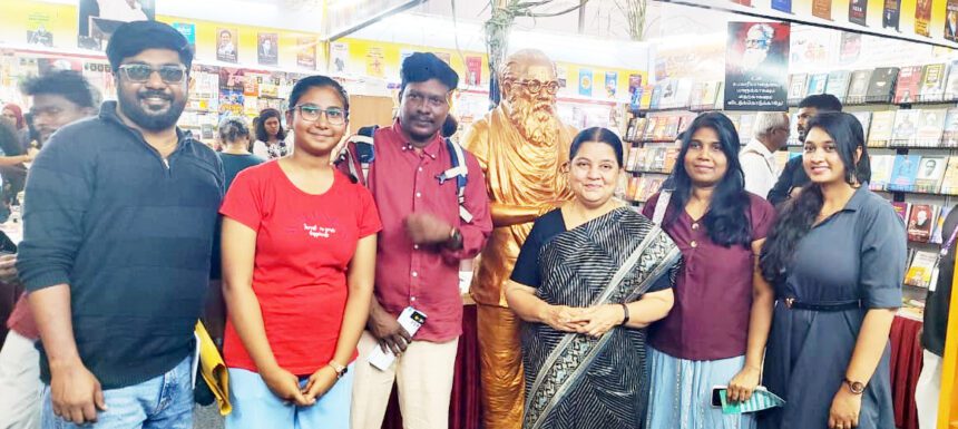 சென்னை புத்தகக் காட்சி – 2026 பெரியார் சுயமரியாதைப் பிரச்சார நிறுவன அரங்கு எண்: F-36இல் நேற்று (16.01.2026) மாலை 6 மணியளவில் திராவிடர் கழக பிரச்சார செயலாளர் வழக்குரைஞர் அ.அருள்மொழி புத்தக வாசகர்களை சந்தித்தார். வாசகர்கள் அவரிடம் புத்தகத்தில் கையெழுத்து பெற்று, ஒளிப்படம் எடுத்துக்கொண்டனர். தமிழ்நாடு அரசு அவருக்கு வழங்கிய 2026ஆம் ஆண்டிற்கான தந்தை பெரியார் விருதினை பெற்றதற்கு புத்தக வாசகர்கள் மற்றும் கழகத் தோழர்கள் அவருக்கு வாழ்த்து தெரிவித்தனர்.