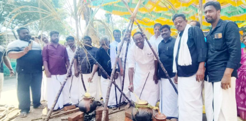 அனைவரும் ஒன்று கூடி பொங்க லிட்டு திராவிட பொங்கல், சமத்துவ பொங்கல், பொங்கலோ பொங்கல் என முழக்கமிட்டு மகிழ்ந்தனர்.