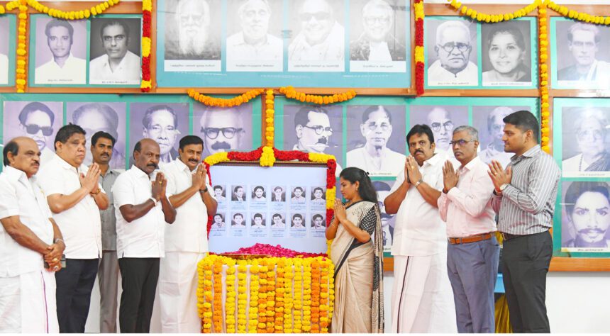 இன்று (25.1.2026) சென்னை, கிண்டி காந்தி மண்டபம் வளாகம், மொழிப்போர் தியாகிகள் மணிமண்டபத்தில், தமிழ்மொழி தியாகிகள் நாளை முன்னிட்டு மொழிப் போரில் சிறை சென்று உயிர்நீத்த தோழர்கள் தாளமுத்து, நடராசன் உள்ளிட்டோரின் நினைவைப் போற்றும் வகையிலும், தியாகிகளை நினைவு கூறும் வகையிலும் அவர்களது படங்களுக்கு தமிழ்நாடு அரசின் சார்பில் தமிழ் வளர்ச்சி மற்றும் செய்தித் துறை அமைச்சர் மு.பெ. சாமிநாதன், மருத்துவம் மற்றும் மக்கள் நல்வாழ்வுத் துறை அமைச்சர் மா.சுப்பிரமணியன், பெருநகர சென்னை மாநகராட்சி மேயர் ஆர்.பிரியா, துணை மேயர் மு.மகேஷ் குமார், தமிழ் வளர்ச்சி மற்றும் செய்தித் துறை செயலாளர் வே. ராஜாராமன்,  செய்தி மக்கள் தொடர்புத் துறை இயக்குநர் மரு. இரா. வைத்திநாதன்,  தமிழ் வளர்ச்சித் துறை இயக்குநர் முனைவர் ந. அருள் மற்றும் அரசு உயர் அலுவலர்கள் ஆகியோர் மாலை அணிவித்து, மலர் தூவி மரியாதை செலுத்தினார்கள்.
