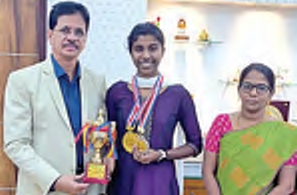 போட்டிகளில் வெற்றி பெற்ற மாணவி கார்த்திகா, தமிழ்நாடு டாக்டர் எம்.ஜி.ஆர். மருத்துவப் பல்கலைக்கழகத்தின் துணைவேந்தர் டாக்டர் கி. நாராயணசாமியைச் சந்தித்து வாழ்த்து பெற்றார்.