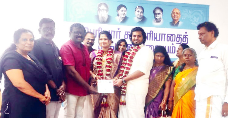தனலட்சுமி – பிரபுகுமார் ஆகியோரின் ஜாதி மறுப்பு இணையேற்பு நிகழ்வினை கழக மாநில ஒருங்கிணைப்பாளர் வி.பன்னீர்செல்வம் முன்னிலையில், பெரியார் சுயமரியாதை திருமண நிலைய இயக்குநர் பசும்பொன் நடத்தி வைத்தார் (6.2.2026)