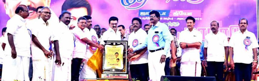 விழாவில், அமைச்சர்கள் எ.வ.வேலு, மா.சுப்பிரமணியன், அன்பில் மகேஸ், ஜாக்டோ-ஜியோ மாநில ஒருங்கிணைப் பாளர்கள் இரா.தாஸ், மு.பாஸ்கரன், கு.தியாகராஜன், ஒருங்கிணைப்பாளர் அ.வின்சென்ட் பால்ராஜ் உள்ளிட்டோர் பங்கேற்றனர்.