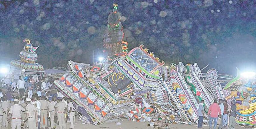 தேரின் அடியில் சிக்கித் தவித்த 10-க்கும் மேற்பட்டோர் மீட்பு!