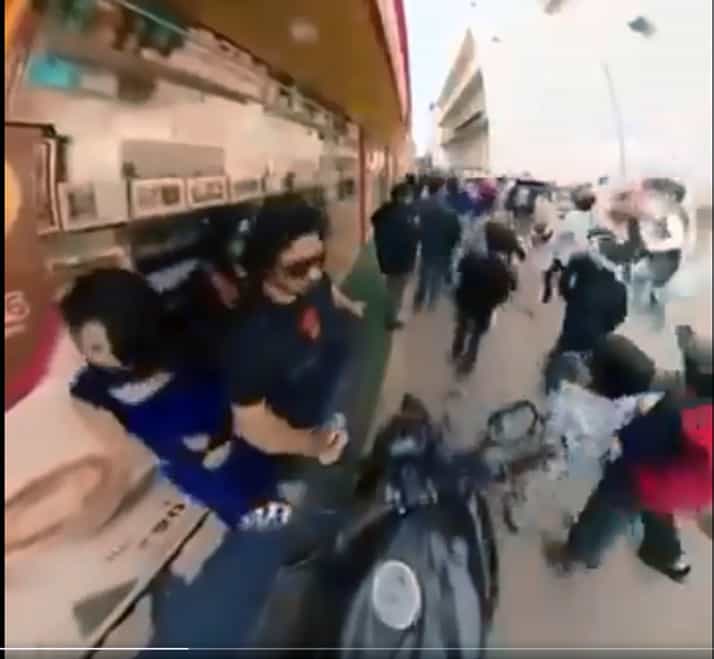 இருப்பினும், அந்த கும்பல் முழுமையாகக் கடந்து செல்லும் வரை, அந்த இளைஞர் ஒரு கவசமாக நின்று அந்தப் பெண்களைப் பாதுகாத்துள்ளார்.