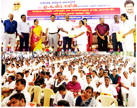 கரோனா காலத்தில் பணியாற்றிய 668 செவிலியர்களுக்கு பணி நியமன ஆணை அமைச்சர் மா.சுப்பிரமணியன் வழங்கினார்