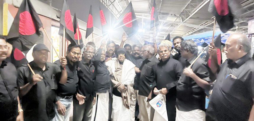 கருநாடக மாநிலம் பெங்களூருவில் நடைபெறக்கூடிய சுயமரியாதை இயக்க நூற்றாண்டு நிறைவு விழா (28.2.2026) மாநாட்டில் பங்கேற்பதற்காக சென்னையில் இருந்து பெங்களூர் மெயில் ரயில் மூலம் பெங்களூரு வருகை தந்த தமிழர் தலைவருக்கு பெங்களூரு மாநிலத் தலைவர் ஜானகிராமன், மாநிலச் செயலாளர் முல்லைக்கோ, துணைத்தலைவர் எஸ்.குணவேந்தன் மற்றும் கழக ஒருங்கிணைப்பாளர் ஊமை ஜெயராமன், சேலம் மாவட்ட தலைவர் வீரமணி ராஜா, தாம்பரம் மாவட்ட தலைவர் முத்தையன், தாம்பரம் நாத்திகன், நீலாங்கரை வீரபத்திரன், சோழிங்கநல்லூர் மாவட்ட தலைவர் பாண்டு, கோலார் தங்கவயலைத் சேர்ந்த தங்கவேல் கரிகாலன், கழகத் தோழர்கள் மற்றும் ஏராளமானோர் தமிழர் தலைவருக்கு பயனடை அணிவித்து அன்போடு வரவேற்றனர்.