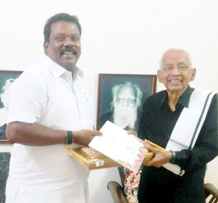 திராவிடர் கழகத் தலைவர் ஆசிரியர் கி.வீரமணி அவர்களை, அவரது இல்லத்தில் நேற்று (27.2.2026) சந்தித்த தமிழ்நாடு காங்கிரஸ் கமிட்டியின் தலைவர் கு.செல்வபெருந்தகை, அவரது மகள் அட்சயா பிரியாவின் திருமண ஒப்பந்த விழா அழைப்பிதழை வழங்கினார்.