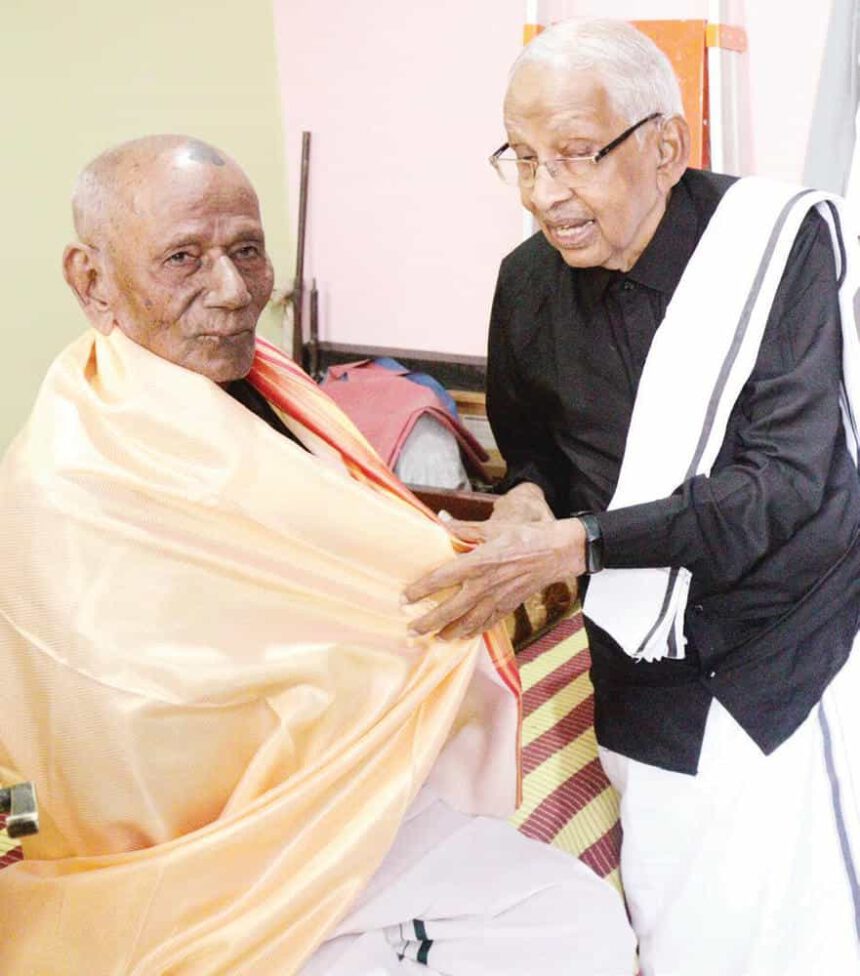 106 வயது பெரியார் பெருந்தொண்டர் பெங்களூரு வீ.மு.வேலுவை நலம் விசாரித்தார் தமிழர் தலைவர்