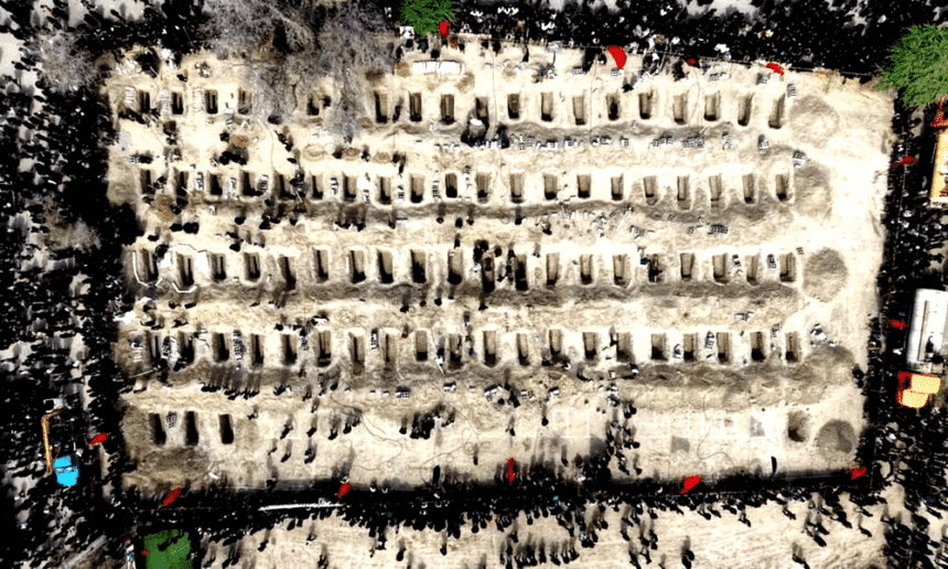 இந்நிலையில், இந்த தாக்குதலில் இறந்த நூற்றுக்கும் மேற்பட்ட குழந்தைகளை புதைப்பதற்காக தோண்டப்பட்டுள்ள குழிகளின் ஒளிப்படங்களை ஈரான் பகிர்ந்துள்ளது. இது இன்னும் சோகத்தை ஏற்படுத்தியுள்ளது. இந்தப் ஒளிப்படங்களை எக்ஸ் தளத்தில் பகிர்ந்த ஈரான் வெளியுறவுத் துறை அமைச்சர்,