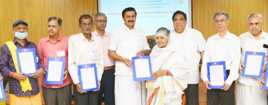முதியோர்க்கும் உதவிக்கரம்! அகவை முதிர்ந்த 100 தமிழறிஞர்களுக்கு நிதி உதவிக்கான அரசாணை அமைச்சர் மு.பெ.சாமிநாதன்வழங்கினார்