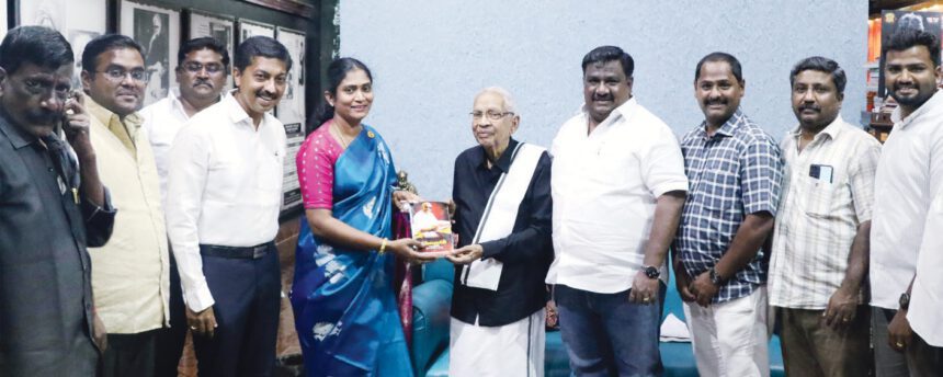 தி.மு.க. மாணவரணி மாநிலச் செயலாளராக நியமிக்கப்பட்டுள்ள வீரமணி ஜெயக்குமார், தமிழர் தலைவர் ஆசிரியர் கி.வீரமணி அவர்களை நேரில் சந்தித்து வாழ்த்துப் பெற்றார். உடன்: தி.மு.க. மாணவரணிப் பொறுப்பாளர்கள். (சென்னை, 16.03.2026)