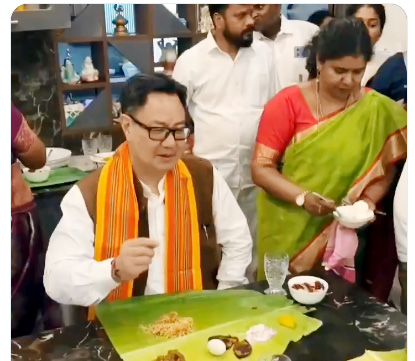 செங்கல்பட்டு, மார்ச் 24– ஒன்றிய அமைச்சர் கிரண் ரிஜிஜு செங்கல்பட்டில் தமிழ்நாடு பாரம்பரிய உணவை வாழையிலையில் சாப்பிட்டு, அதைத் தமிழில் பதிவிட்டுள்ளார்