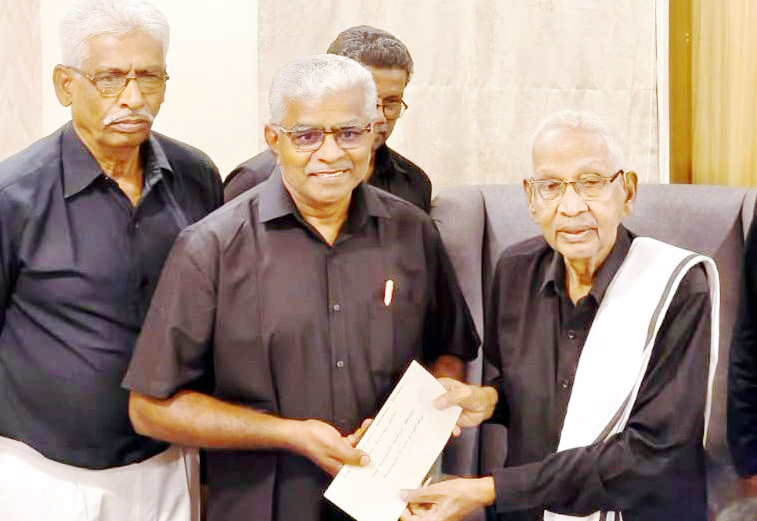 மேட்டுப்பாளையம் நகர தலைவர் பழனிச்சாமி மேட்டுப் பாளையம் காரமடை சாலை கிரிஸ்டன் காலணியில் ஜி.ஆர்.பி ஸ்டீல்ஸ் என்ற பெயரில் புதிய நிறுவனத்தை தொடங்குவதன் மகிழ்வாக திருச்சி நாகம்மையார் குழந்தைகள் இல்லத்திற்கு தமிழர் தலைவர் ஆசிரியர் கி.வீரமணி அவர்களிடம் ரு.10,000 நன்கொடையாக வழங்கினார். (கோவை, 10.03.2026)