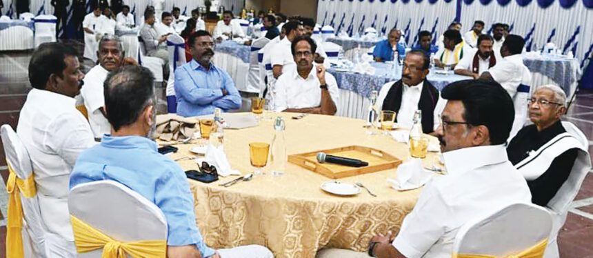 நேற்று (30.3.2026) சென்னை அண்ணா அறிவால யத்தில், மதச்சார்பற்ற முற்போக்குக் கூட்டணிக் கட்சித் தலைவர்களோடு, தி.மு.க. தலைவரும், முதலமைச்சருமான மு.க.ஸ்டாலின் அவர்கள் கலந்துரையாடினார்.