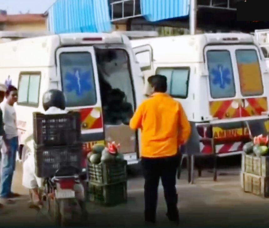 மருத்துவப் பயனாளிகளின் உயிர் காக்க ஓட வேண்டிய 108 ஆம்புலன்ஸ்கள், இன்று வாரணாசியின் மண்டி மார்க்கெட்டில் தர்பூசணி பழங்களை ஏற்றி வந்து வியாபாரம் செய்யும் வாகனங்களாக மாற்றப்பட்டுள்ளன.
