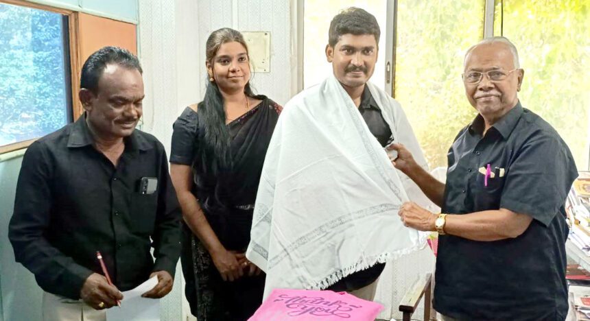 சென்னை மேற்கு மாவட்ட கழக தலைவர் கரு.அண்ணாமலையின் மகன் வழக்குரைஞர் அ.அன்பரசனின் 27ஆவது பிறந்த நாளையொட்டி (12.4.2026) நாகம்மையார் குழந்தைகள் இல்லத்திற்கு ரூ.5000 திராவிடர் கழகத் துணைத் தலைவர் கவிஞர் கலி.பூங்குன்றன் அவர்களிடம் வழங்கி வாழ்த்து பெற்றார். உடன்: கழகத் தோழர்கள் அரும்பாக்கம் சா.தாமோதரன், எம்.ஜி.ஆர். பகுதி தலைவர் ஜெயசீலன், வழக்குரைஞர் அ.அன்பரசனின் இணையர் அபிநயா உள்ளனர்.