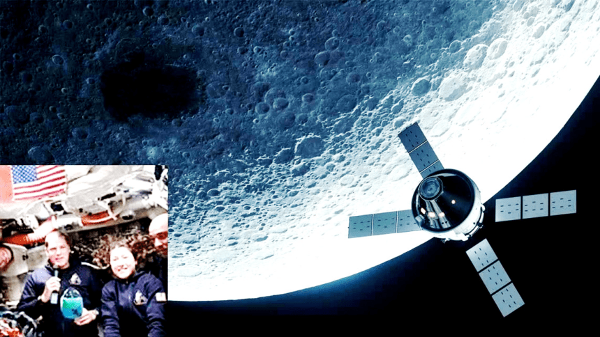 இந்த வரலாற்றுப் பயணத்தின் போது விண்வெளி வீரர்களுக்கு ஒரு ஆச்சரியமான செய்தி காத்திருந்தது. கடந்த ஆகஸ்ட் மாதம் மறைந்த அப்பல்லோ 13 விண்கலத்தின் கமாண்டர் ஜிம் லவல், தான் இறப்பதற்கு இரண்டு மாதங்களுக்கு முன்பே பதிவு செய்த வாழ்த்துச் செய்தியை வீரர்கள் கேட்டனர். “எனது பழைய ஏரியாவுக்கு உங்களை வரவேற்கிறேன். இது ஒரு வரலாற்று நாள், காட்சியைக் கண்டு ரசிக்க மறக்காதீர்கள்” என்ற அவரது குரல் வீரர்களை நெகிழ்ச்சியடையச் செய்தது.
