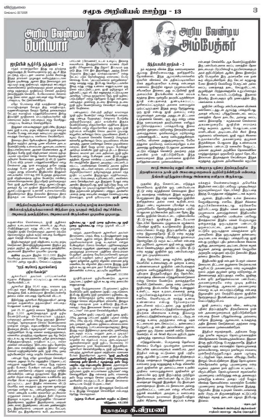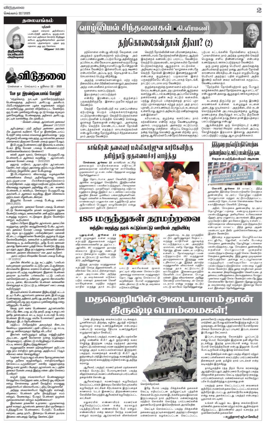 "Viduthalai" is a Tamil newspaper founded by the social reformer Thanthai Periyar, in 1935. Aimed at promoting rationalism, social justice, and gender equality, it played a crucial role in advocating for the rights of marginalized communities in Tamil Nadu. The newspaper remains significant in the legacy of Periyar’s movement for a more equitable society. Under the able leadership of K. Veeramani, the current editor of "Viduthalai," the newspaper continues to uphold the values of Periyar's vision for social justice and equality. Veeramani, a prominent activist and advocate for rationalism, has revitalized the publication, ensuring it addresses contemporary issues while staying true to its foundational principles.
