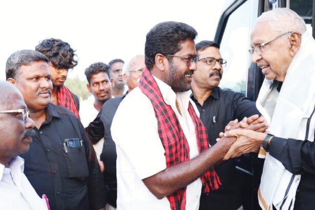 ஜெயங்கொண்டம் சட்டமன்றத் தொகுதி திமுக வேட்பாளர் க.சொ.க கண்ணன் தமிழர் தலைவருக்குப் பொன்னாடை அணிவித்து வரவேற்றார்.…