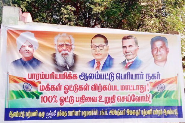 காரைக்குடி அருகில் உள்ள கல்லல் ஒன்றியம் ஆலம்பட்டு கிராமத்தின் பெரியார் நகர் பொதுமக்கள் வைத்துள்ள பதாகை…